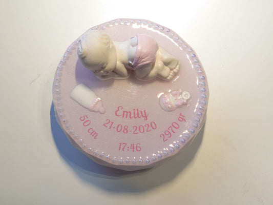 Een geboortetegel nagemaakt van het geboortekaartje. Een echt speciaal cadeau.