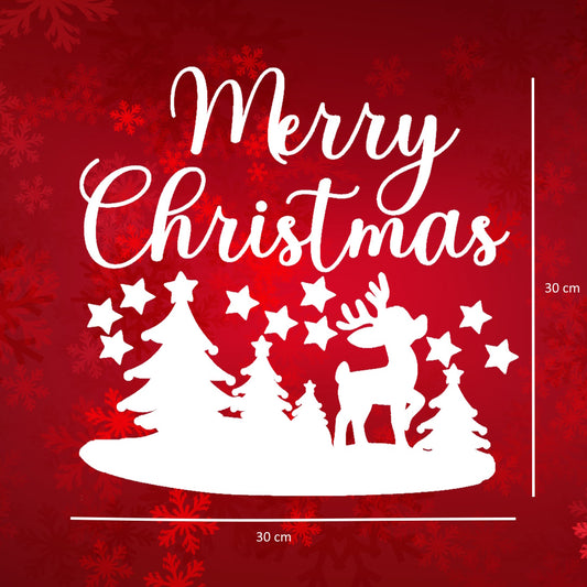 Statische Kerst Raamsticker – Merry Christmas met Rendier en Dennenbomen