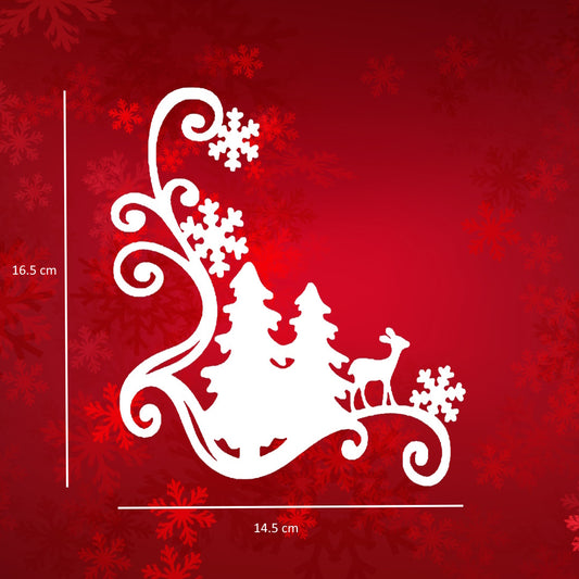 Statische Kerst Raamsticker – Merry Christmas met Rendier en Dennenbomen