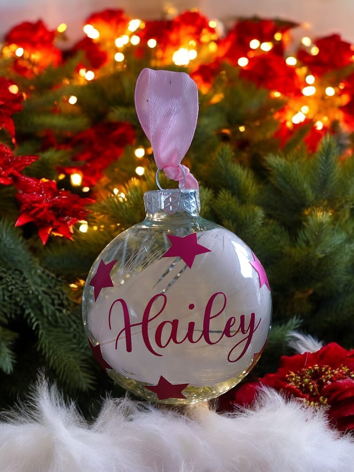 Kerstbal met naam, sterren.